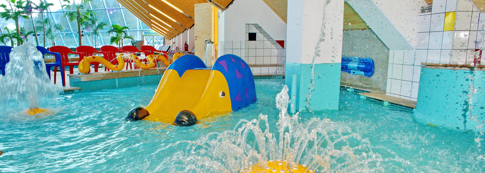 L’espace enfants propose une progression parfaite selon les âges. Pour les tout-petits (0-3 ans), l’Igel Rutsche (toboggan hérisson) et Ottili (13m, toboggan serpent rose) offrent des premiers glissades en toute sécurité dans le bassin enfant.